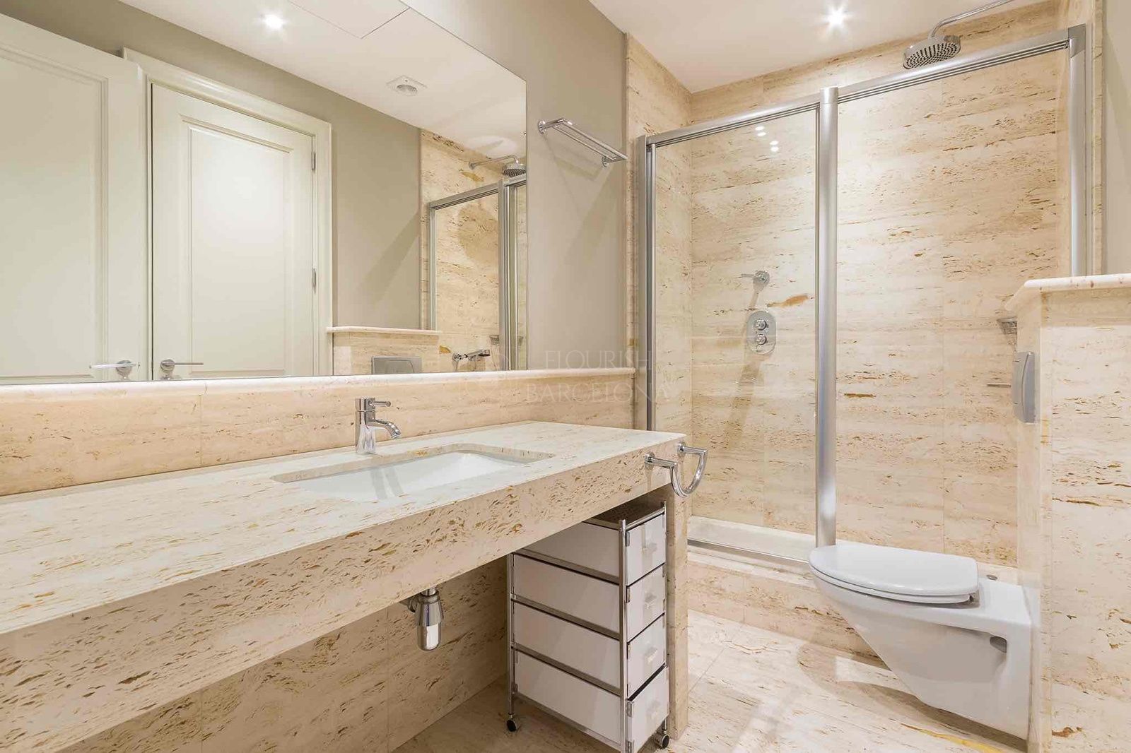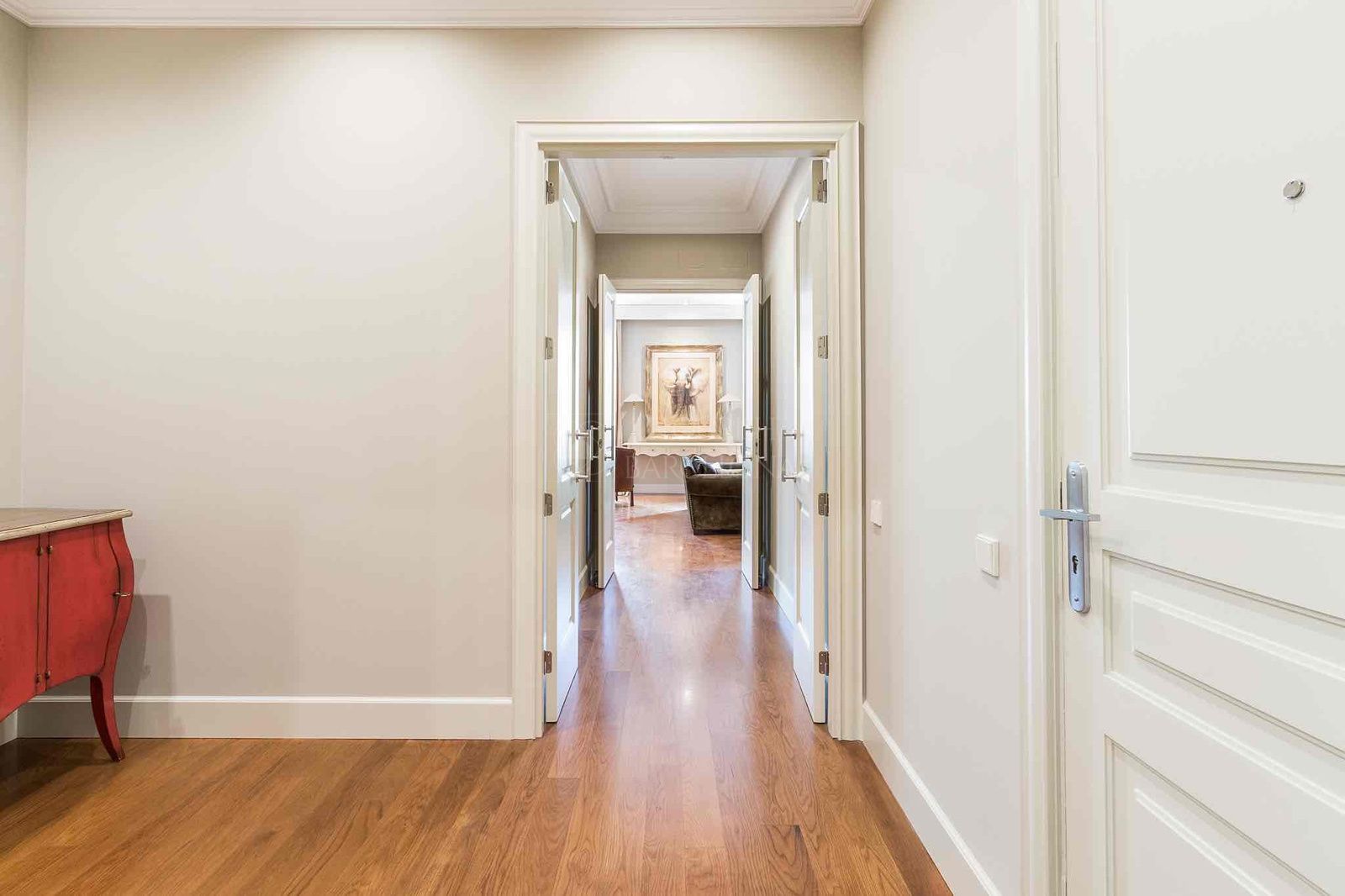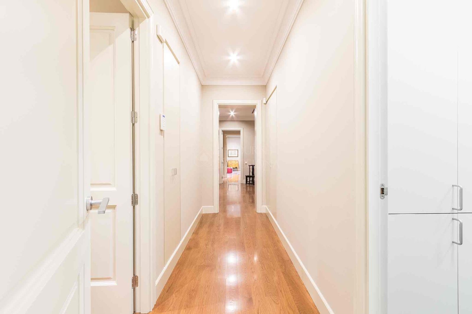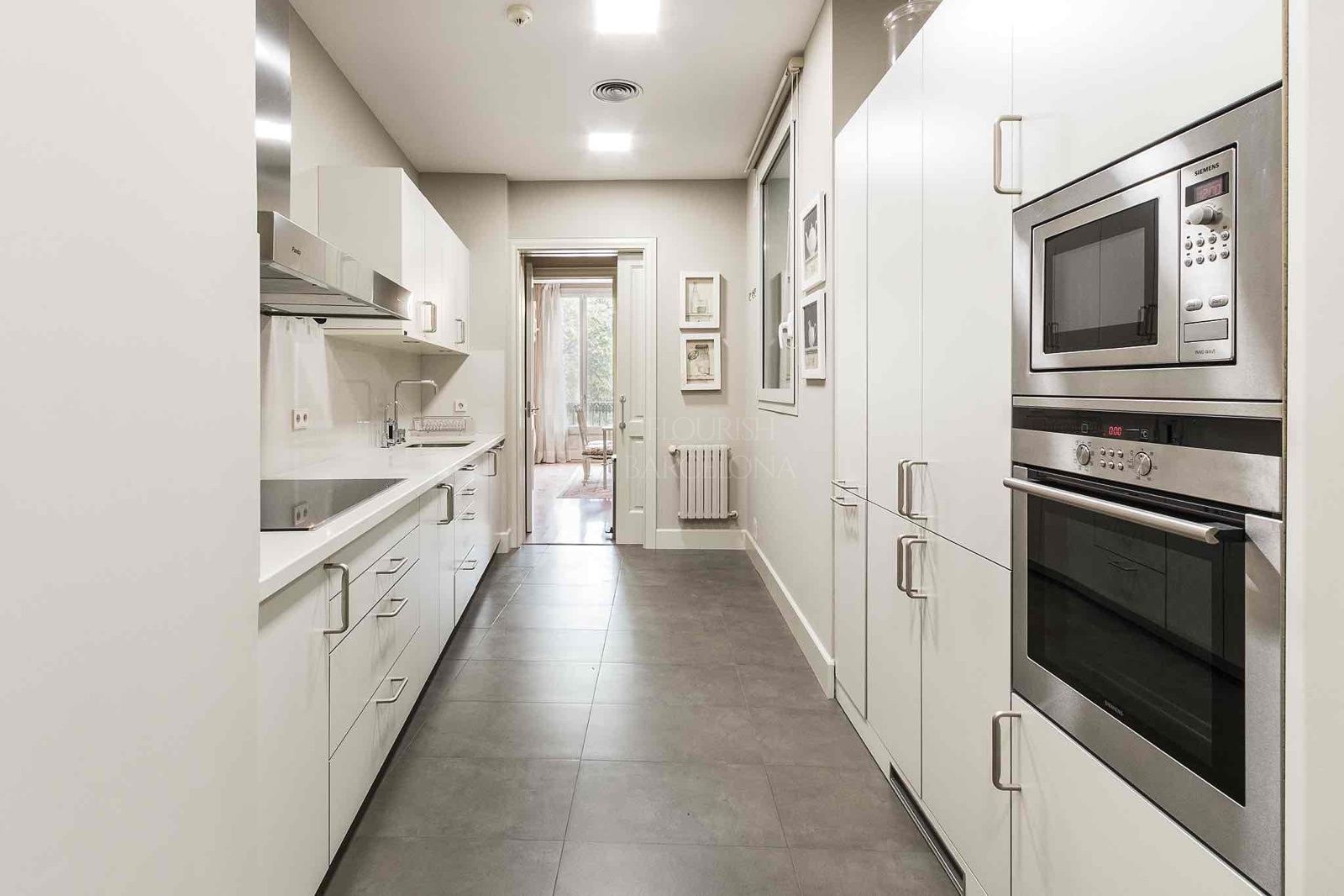 Desde el elegante recibidor se accede a una magnífica zona de día, donde un amplio y luminoso salón-comedor se abre a tres balcones sobre Paseo de Gracia, ofreciendo una experiencia única de luz, amplitud y vistas. La cocina independiente tipo office, generosa en espacio y almacenaje, está equipada con electrodomésticos de alta gama, perfecta tanto para el día a día como para recibir invitados. Completa esta zona un refinado aseo de cortesía.