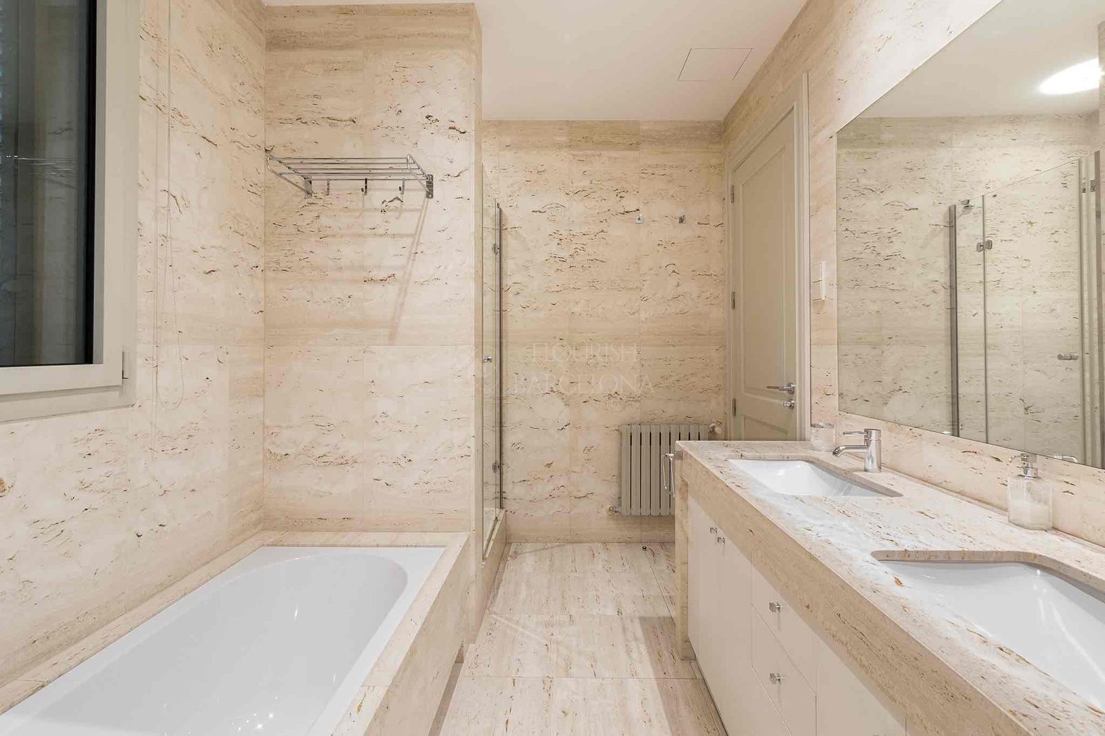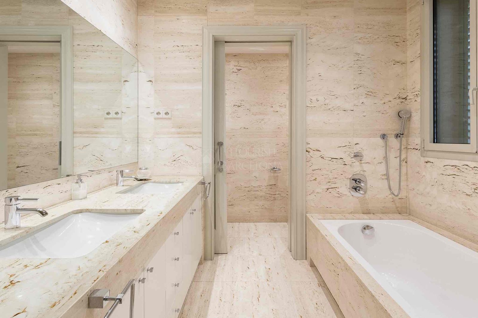 Todas las estancias destacan por su amplitud y elegancia, con acabados de primer nivel: suelo de parquet de alta calidad, armarios empotrados, baños revestidos en mármol Travertino, calefacción de gas y aire acondicionado por conductos.