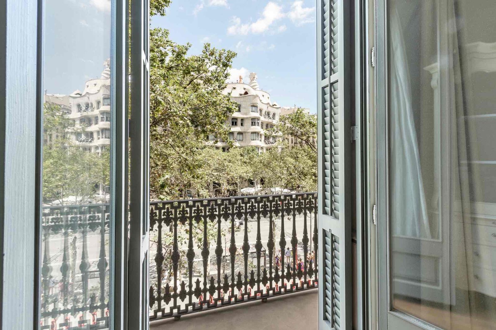 En pleno Paseo de Gracia, la avenida más exclusiva de Barcelona, y justo frente a la icónica La Pedrera de Gaudí, se encuentra esta extraordinaria propiedad de lujo, y con vistas directas a uno de los edificios más emblemáticos del mundo.