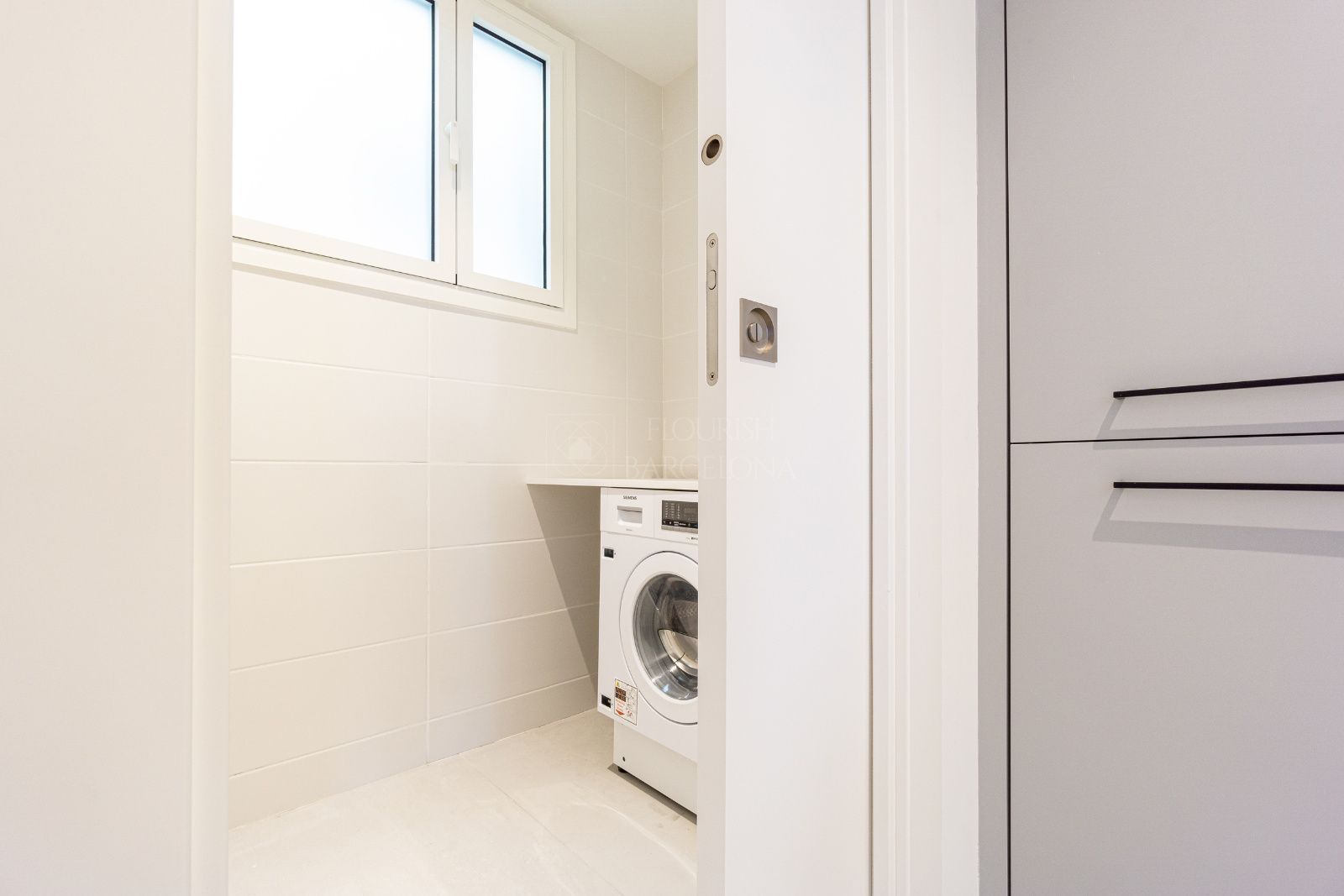La cocina, totalmente equipada con electrodomésticos de alta gama, y cuenta con encimeras de porcelánico y armarios de diseño. Aquí, los amantes de la cocina podrán dar rienda suelta a su creatividad.