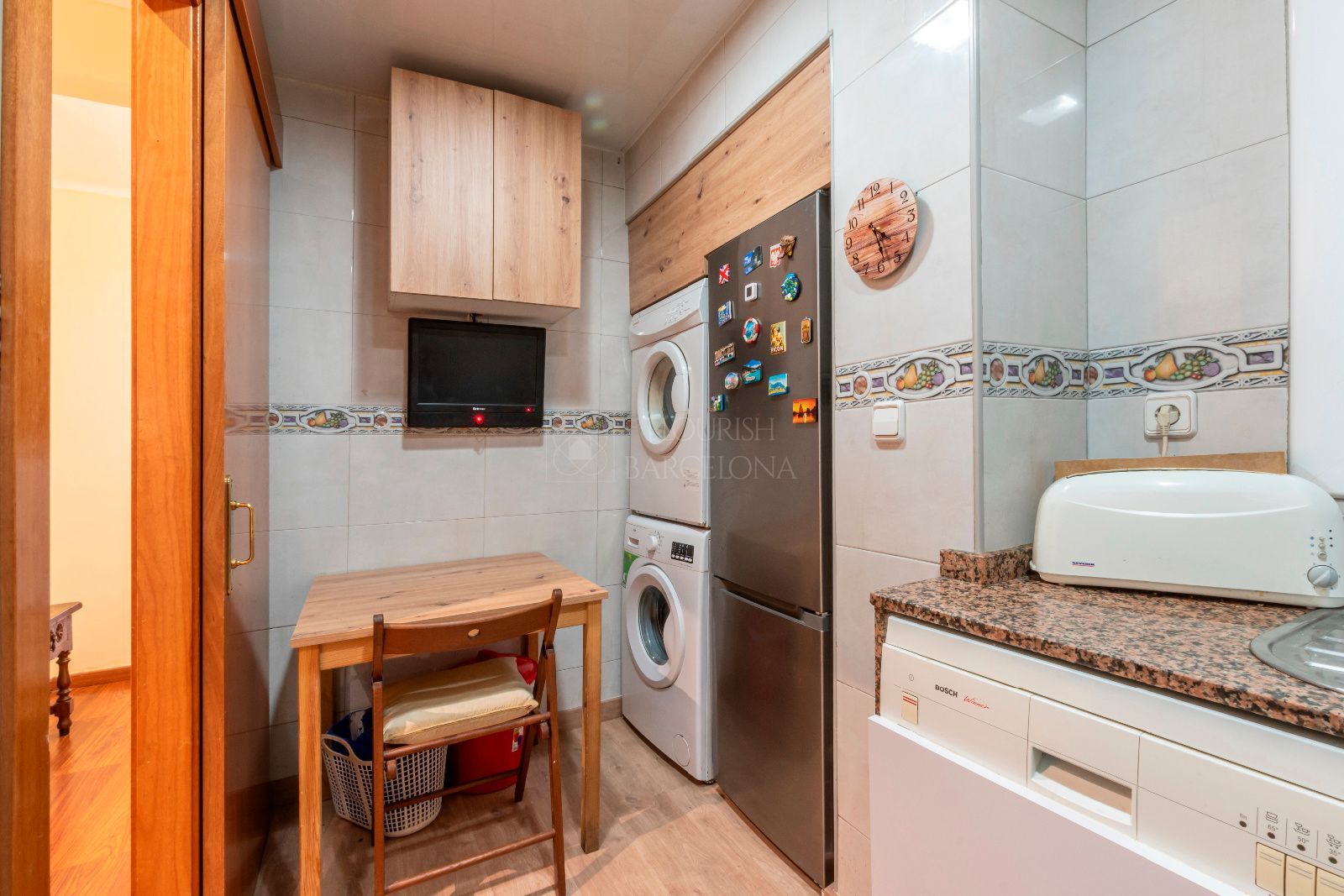 Este apartamento de 67 m² según catastro y en escritura 52m², ha sido completamente reformado con un cuidado especial por mantener los elementos clásicos de la arquitectura catalana, como las vigas de madera tratada y la volta catalana, que aportan carácter y autenticidad a la vivienda.