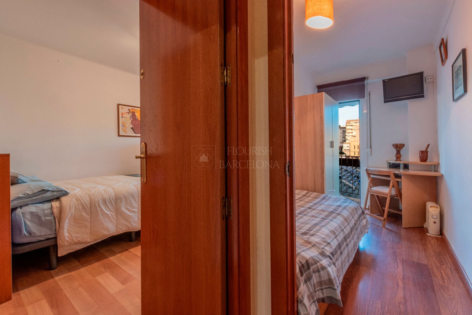 2 amplias habitaciones, luminosas y bien aprovechadas, con balcones y vistas a la calle y al propio barrio.