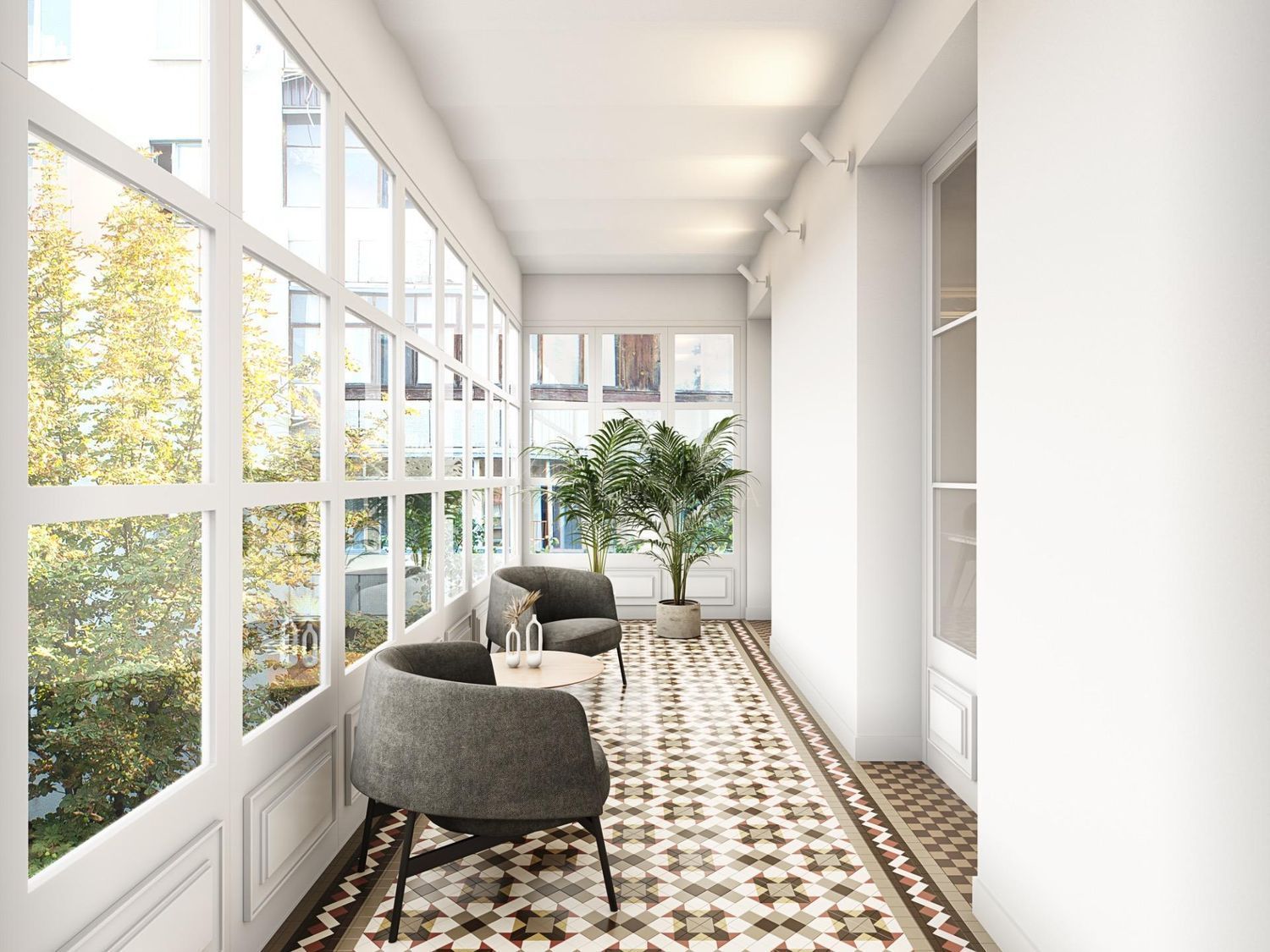- Elementos originales de época: suelos de mosaico Nolla, carpinterías y techos artesonados