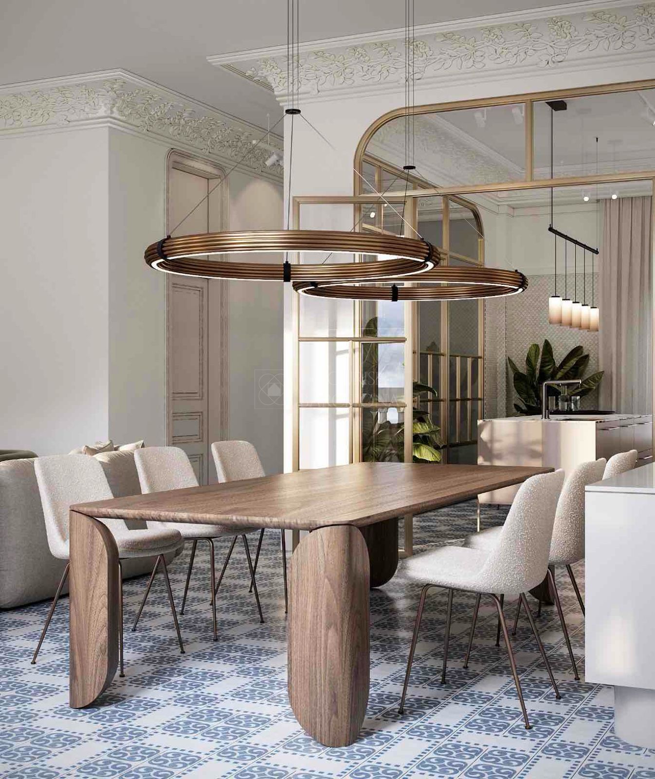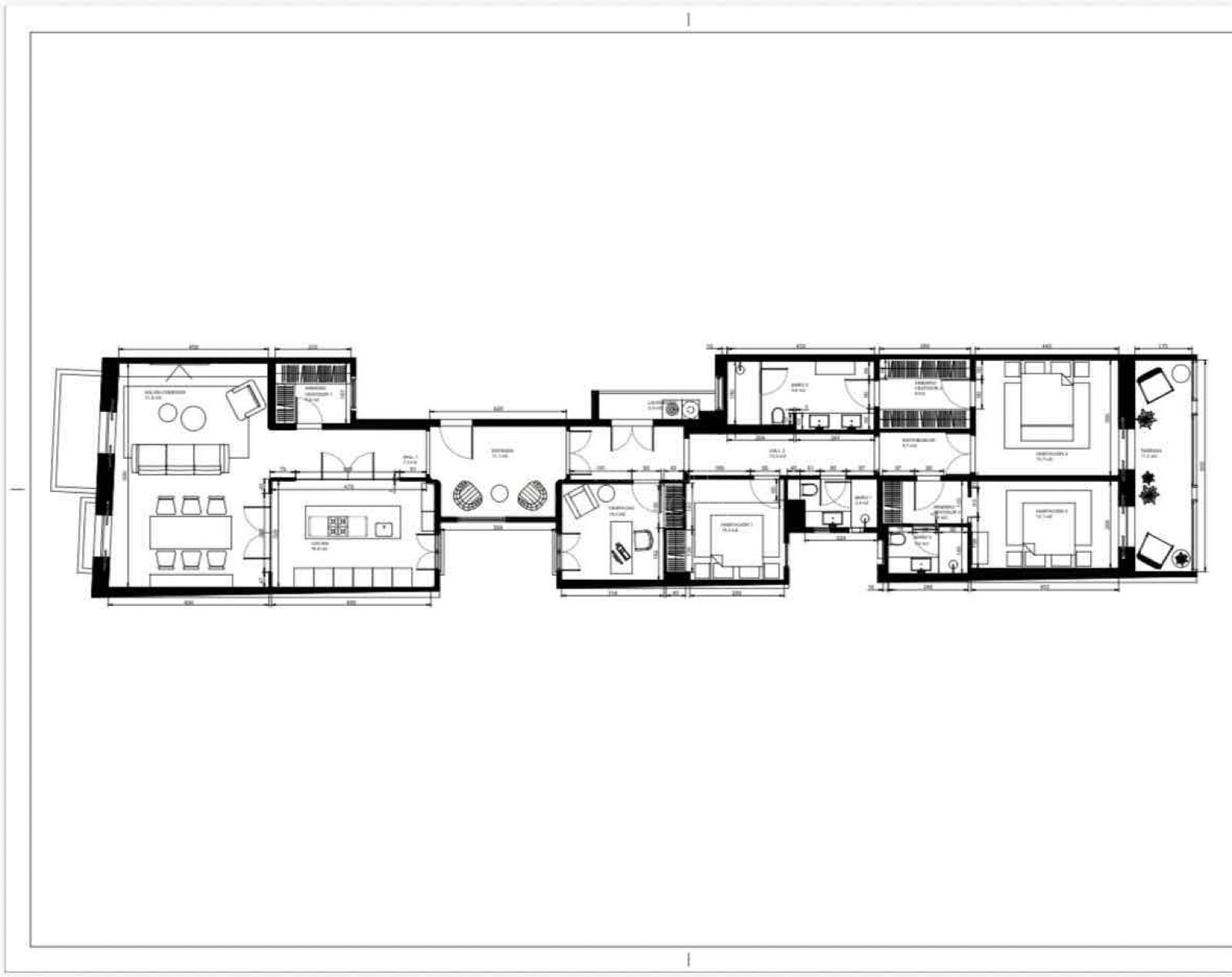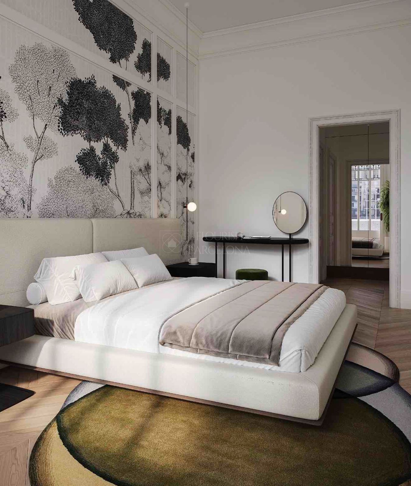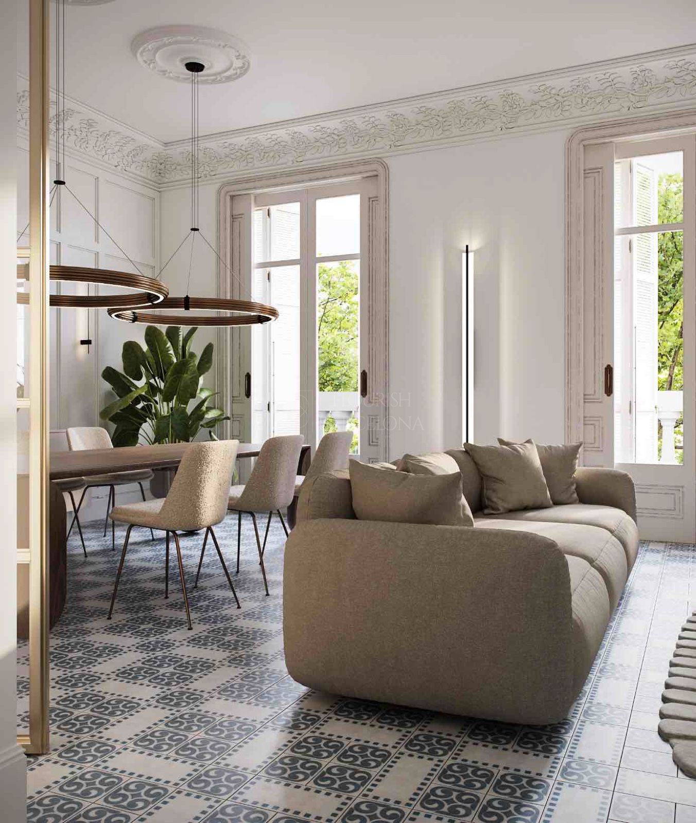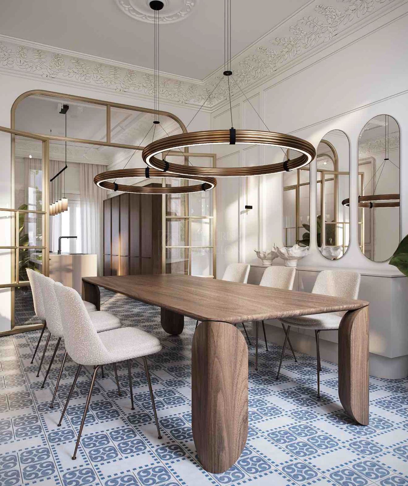 Dall’elegante ingresso si accede a una magnifica zona giorno, dove un ampio e luminoso soggiorno-pranzo si apre su tre balconi affacciati sul Paseo de Gracia, offrendo un’esperienza unica di luce, ampiezza e viste. La cucina indipendente in stile office, generosa per spazio e capacità di contenimento, è dotata di elettrodomestici di alta gamma, perfetta sia per la vita quotidiana sia per ricevere ospiti. Completa questa zona un raffinato bagno di cortesia.