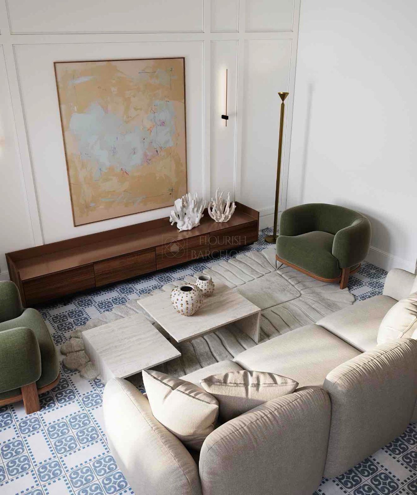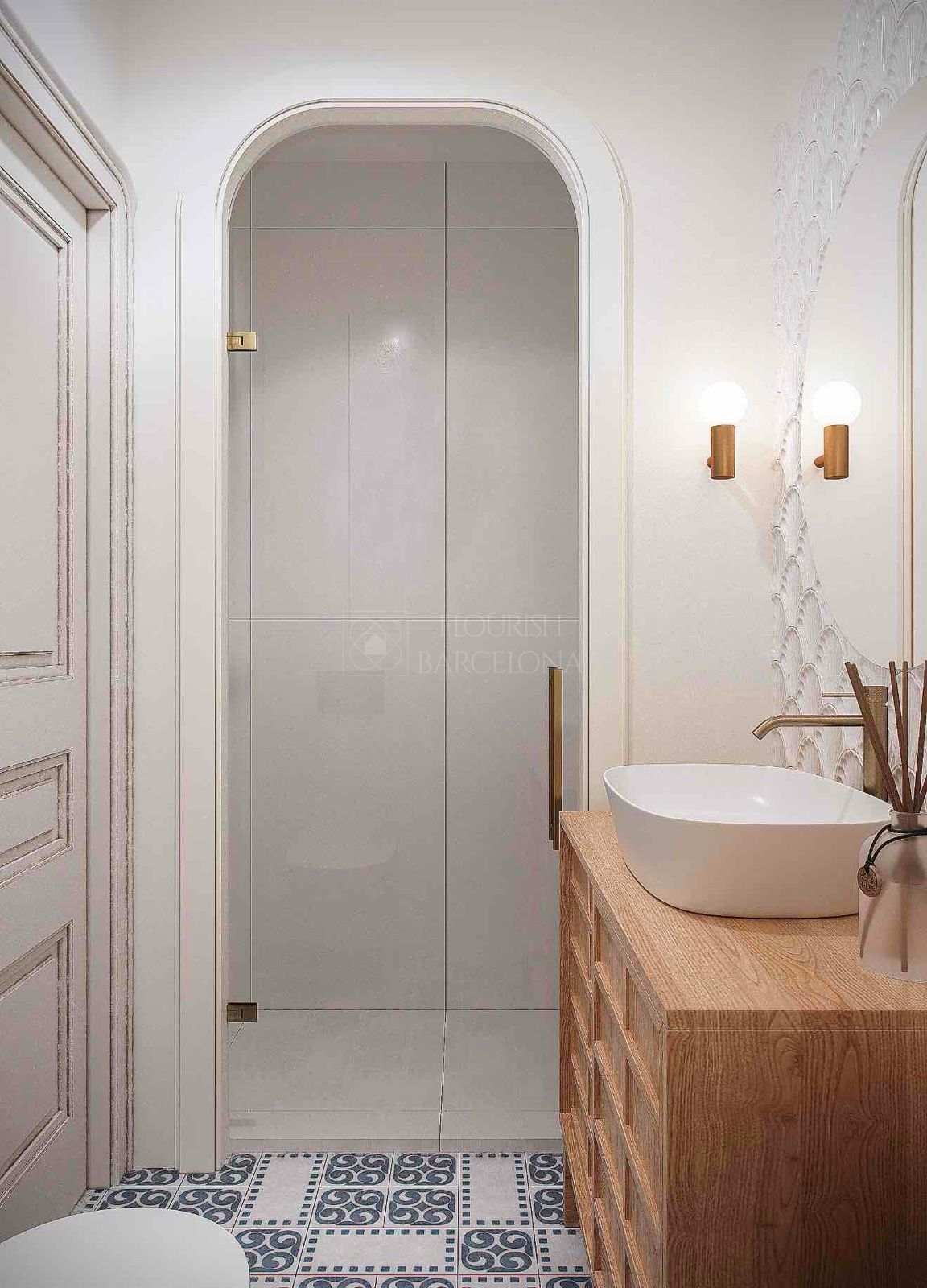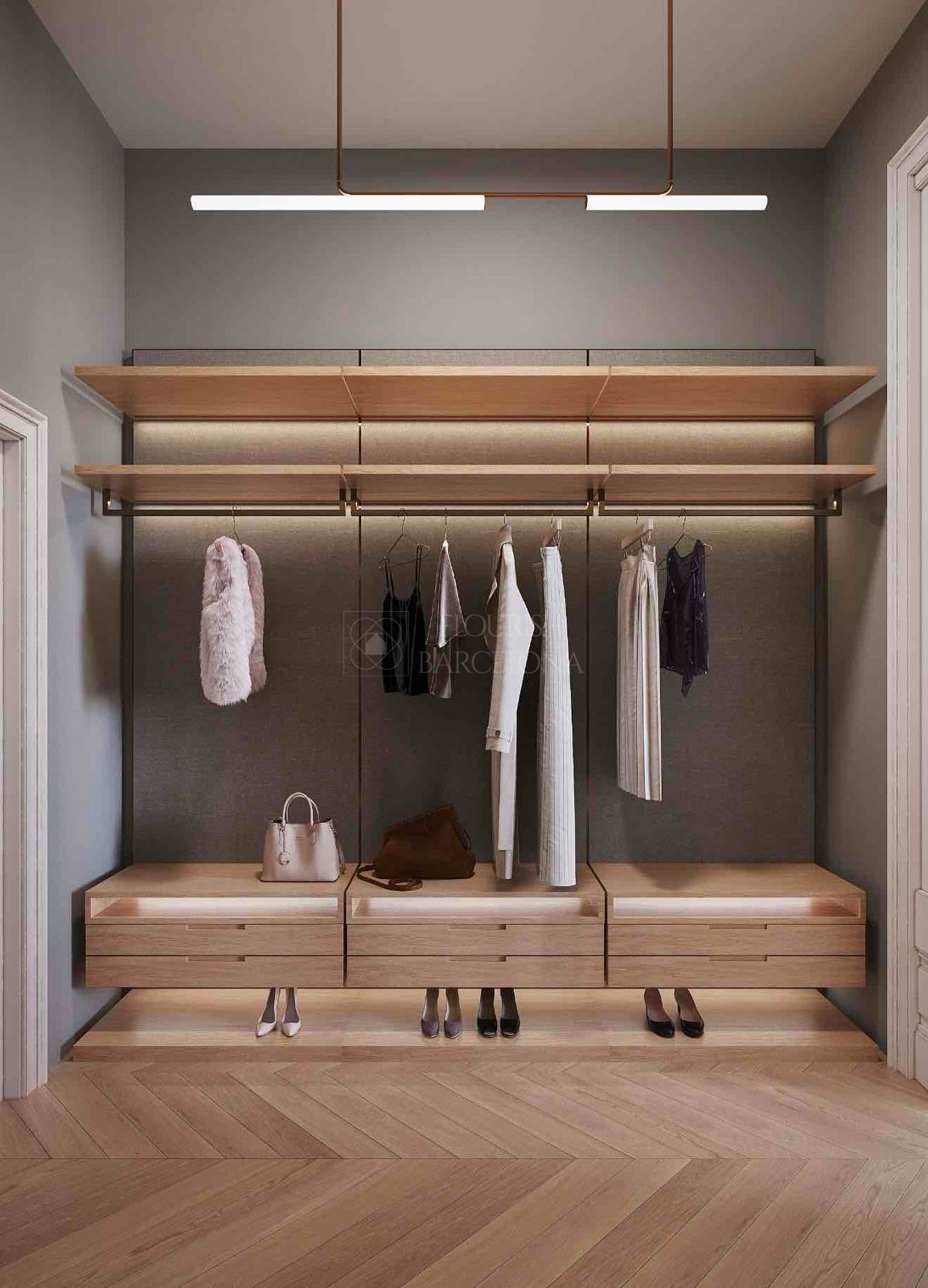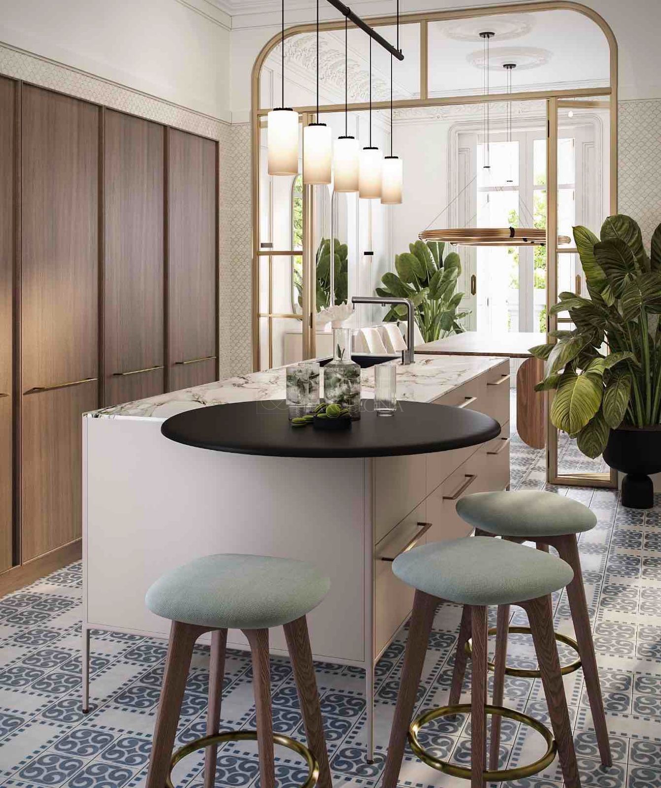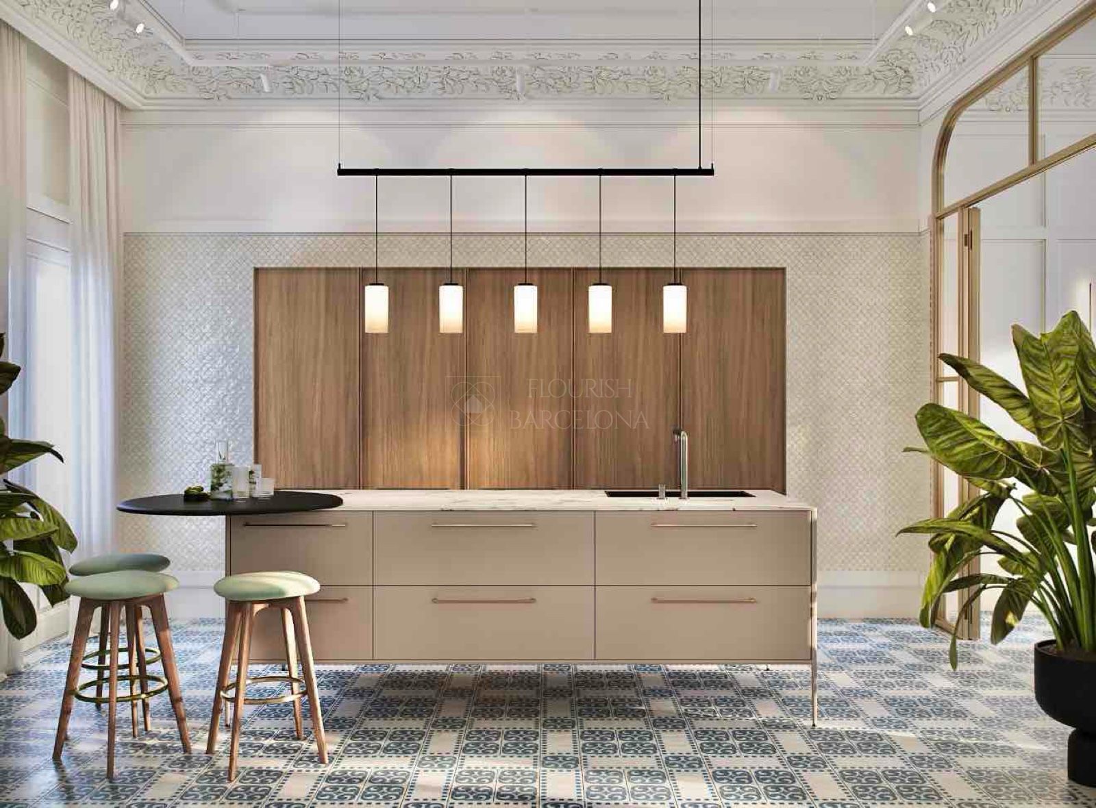 Dall’elegante ingresso si accede a una magnifica zona giorno, dove un ampio e luminoso soggiorno-pranzo si apre su tre balconi affacciati sul Paseo de Gracia, offrendo un’esperienza unica di luce, ampiezza e viste. La cucina indipendente in stile office, generosa per spazio e capacità di contenimento, è dotata di elettrodomestici di alta gamma, perfetta sia per la vita quotidiana sia per ricevere ospiti. Completa questa zona un raffinato bagno di cortesia.